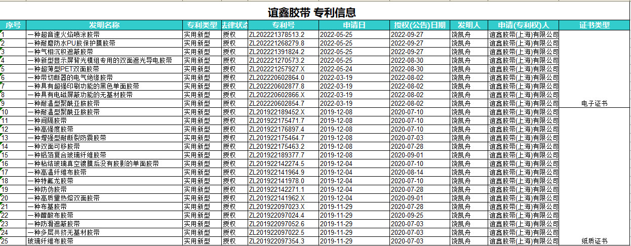 詳情點此下載附件查看.xls),和多所高校及科研單位建立常年密切合作,致力于特殊高溫膠帶的研發生產,多款產品填補國內空白。主營全系列耐高溫熱噴涂膠帶、等離子噴涂膠帶、聚四氟乙烯膠帶、聚酰亞胺膠帶,防靜電聚酰亞胺膠帶、高溫接駁膠帶、各種高溫雙面膠帶、耐酸城高溫膠帶等特殊工業生產的膠粘解決方案。公司產品以替代3M、Tesa、 寺崗、日東、Permace |等知名膠帶為主,為特殊工業膠帶國產化做出一定貢獻。誼鑫膠帶實行完善的現代化管理制度,擁有高素質的管理和技術隊伍,不斷引進先進的生產設備和管理理念,年產各種 膠帶2000萬平米。為了企業的長期發展,公司對產品的要求是綠色環保,質量精益求精。公司系IS09001: 2008質量管理體系認證合格單位,產品多項指標通過SGS、UL、 CTI及歐盟指令相關認證。